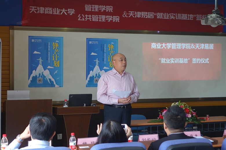 经理王庆生首先致欢迎辞,欢迎易居集团与yl1111永利集团开展深度交流合作,他指出校企合作可以充分发挥公司、企业的各自优势,将公司育人宗旨和企业用人需求相结合,更好的为员工成长成才服务。易居集团天津公司总经理刘长岭介绍了易居集团的发展历程和企业文化。他指出易居企业集团作为中国房地产流通领域的领导品牌,共建实训基地为天商学子提高专业素养和就业竞争力提供发展平台,也为企业选拔和培养人才创造条件。