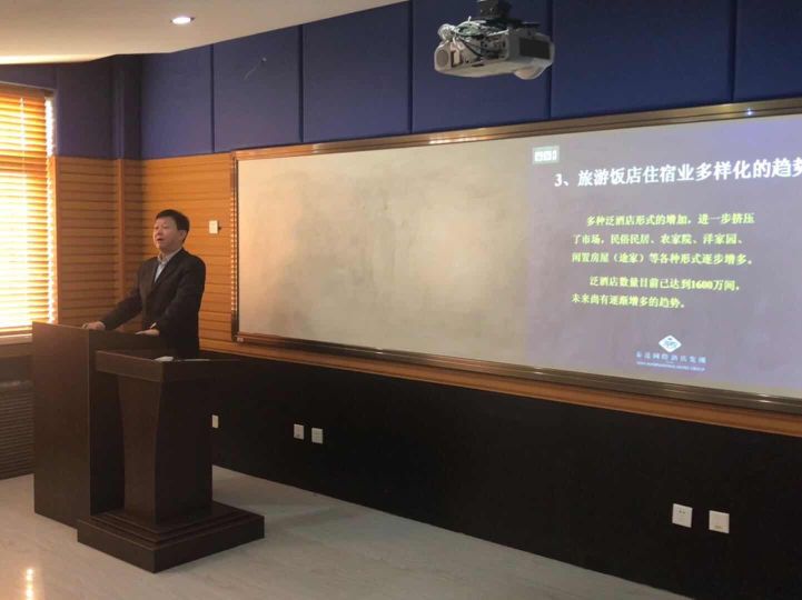 任总经理首先为同学们讲述了酒店业的发展历程,国内星级饭店规模,旅游饭店住宿业多样化趋势,分析了旅游饭店业营销管理的现状和趋势,结合时代特点,讲解了互联网+背景下旅游饭店的营销管理模式。