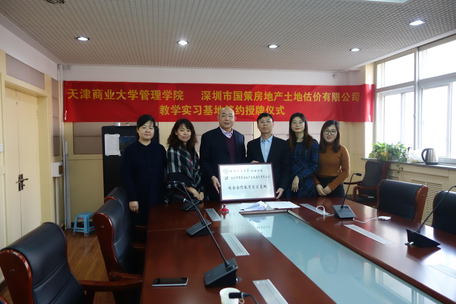 1月14日,yl1111永利集团与深圳市国策房地产土地估价有限公司“校企合作教学实习基地”签约授牌仪式在公司210举行。国策机构华北区副总经理天津分公司负责人阮宗斌、华北区技术副总监李红艳和行政人事专员张雪、yl1111永利集团经理王庆生,工程管理系主任宋海风出席。副经理宗毅主持仪式。