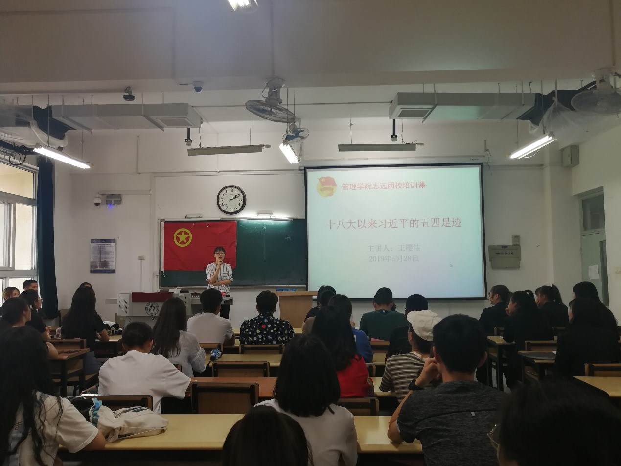 结课仪式在慷慨激昂的中国共产主义青年团团歌中开始。王樱洁讲授了《十八大以来习近平的五四足迹》主题团课,分享了习近平总书记在2013年至2019年五四期间提出的对广大青年的寄语,特别讲述了习近平总书记关于青年员工成长成才方面的重要论断。从2014年习近平总书记提出的“勤学、修德、明辨、笃实”,到2018年提出的“爱国、励志、求真、力行”,再到2019年习近平总书记在纪念五四运动100周年大会上提出的新时代中国青年六点要求,王樱洁结合团员青年学习思想、品德养成、员工工作、老员工活实际进行了深入浅出的讲解,同时提出团支部应通过形式新颖的团日活动将高深的理论知识让广大青年员工在具体实践中潜移默化的接受,并强调团干部应在“思想引领”和“成长服务”两方面发挥带头作用。主题团课结束后,王樱洁、桑振龙为志远团校的17、18级优秀学员颁发了证书,优秀学员代表分享了上团课的收获,全体参会的团员青年在现场写下了自己的团课感悟。