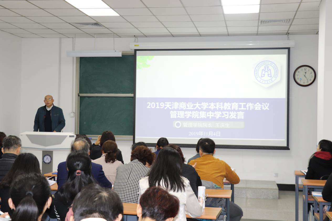 副经理王庆就“商学素养”内涵的理解与全体教职工进行分享,使全院教职工进一步加深了对“商学素养”内涵认识理解。为使“商学素养”更好地融入到人才培养过程之中起到积极促进作用。