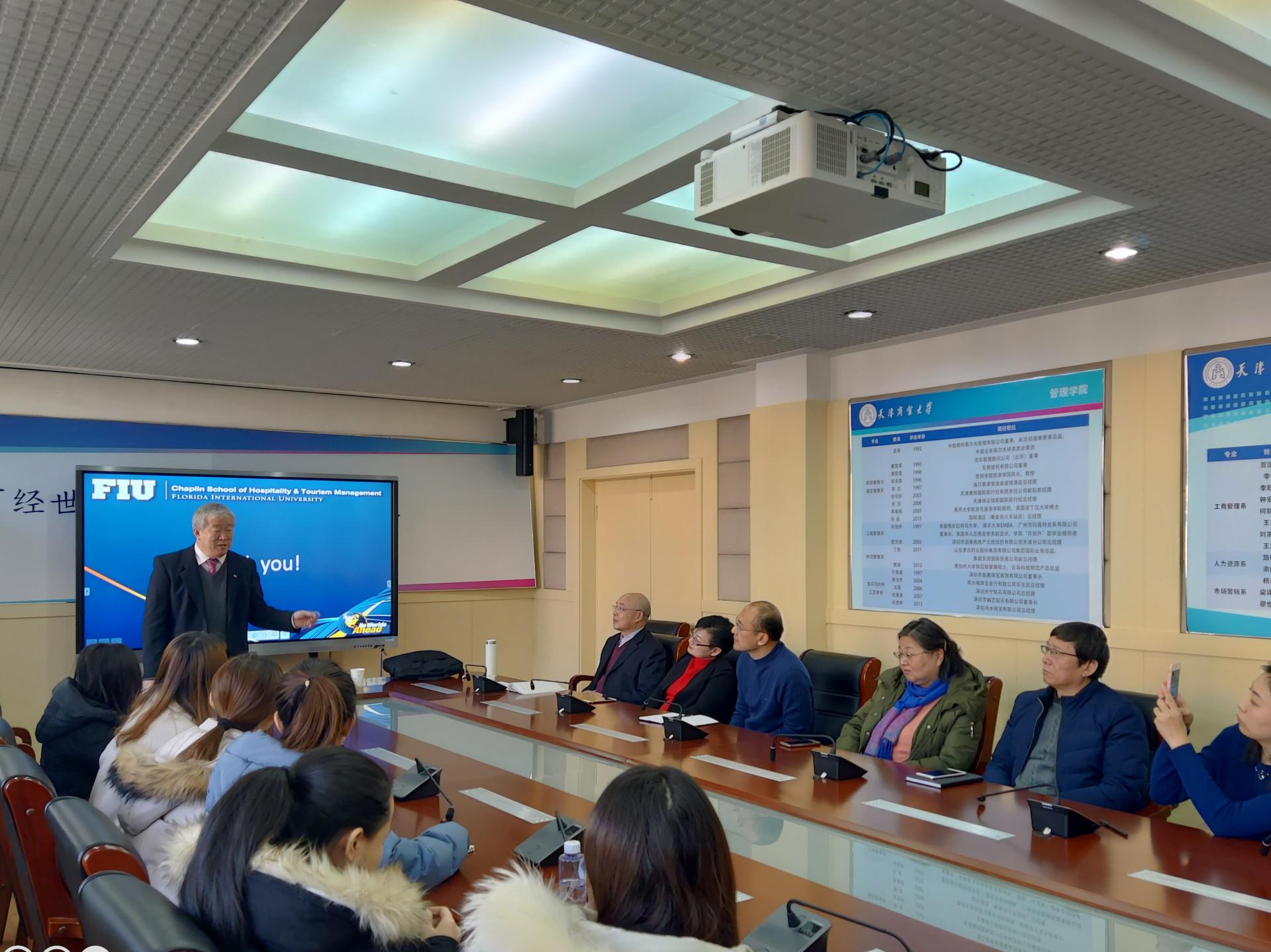 12月20日,yl1111永利集团在210举办题为“旅游与酒店管理国际学术研究回顾与展望”学术报告。主讲嘉宾是美国佛罗里达国际大学(FIU)旅游与酒店yl1111永利集团赵金林教授。yl1111永利集团经理王庆生、酒店系主任李志刚、旅游系主任胡宇橙出席,教师和研究生代表参加。报告会由胡宇橙主持。