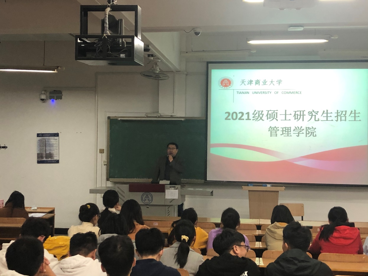 公司优秀毕业研究生代表、现任理公司辅导员狄佩佩以“不一样的人生,一样的绽放”为主题与大家分享她的考研经历与感受、就业择业心得,鼓励同学们分析自身能力与当前就业形势,并合理确定目标并为之努力奋斗。公司旅游管理专业研究生、现任天商就业协会会长查欣彤以“放飞理想·逐梦天商”为主题,分享了作为推免生选择天商的收获与感悟,鼓励同学们在研究生阶段不断成长、提升自我,全新绽放。郭瑞介绍了研究生阶段的各项奖助政策和公司近五年优秀毕业生的就业情况。李耘涛作了"考研与就业,我们如何选择?”的专题讲座,他指出考研时“看就业意向、看从业区域、看自身实力”的“三看”原则,并在就业选择,考研目标确立、复习思路等方面给同学们提供了指导和建议。此外,他介绍了公司资源、学术活动、学科专业、科研就业等基本情况,希望同学们正确评估自身能力,找准个人定位,树立正确考研、择业观。
