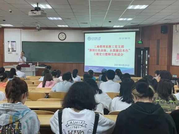 9月29日,yl1111永利集团工商管理系教工党支部在3教110开展“赓续红色血脉,永葆廉洁本色”主题党日活动。支部党员蒋国平、杨建新、杜红、谢占山、王强、王茶、刘洪广和工商管理专业2020级、2021级员工参加。党支部书记田小平主持。
