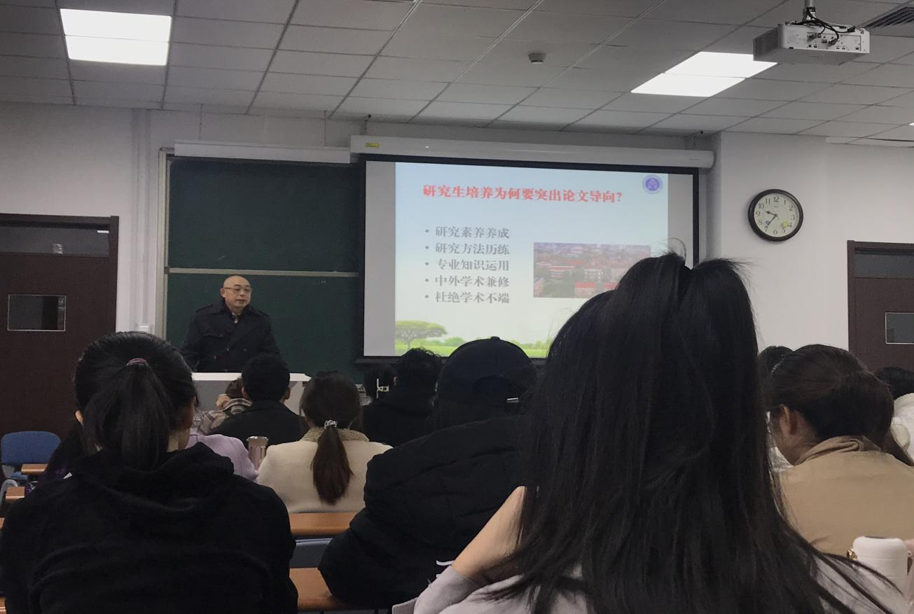 王庆生指出,文献综述要从论文导向到应用导向,要从研究素养养成、研究方法历练、专业知识运用、中外学术兼修、杜绝学术不端五个方面入手,并讲解了文献综述的意义、重要性。他建议研究生同学应熟练掌握文献检索平台,灵活运用文献检索方法,科学梳理相关研究进展等。他结合所指导员工的论文就文献综述写作进行了实例介绍。他鼓励同学们扎实学好基础知识,广泛阅读文献,多与导师沟通。