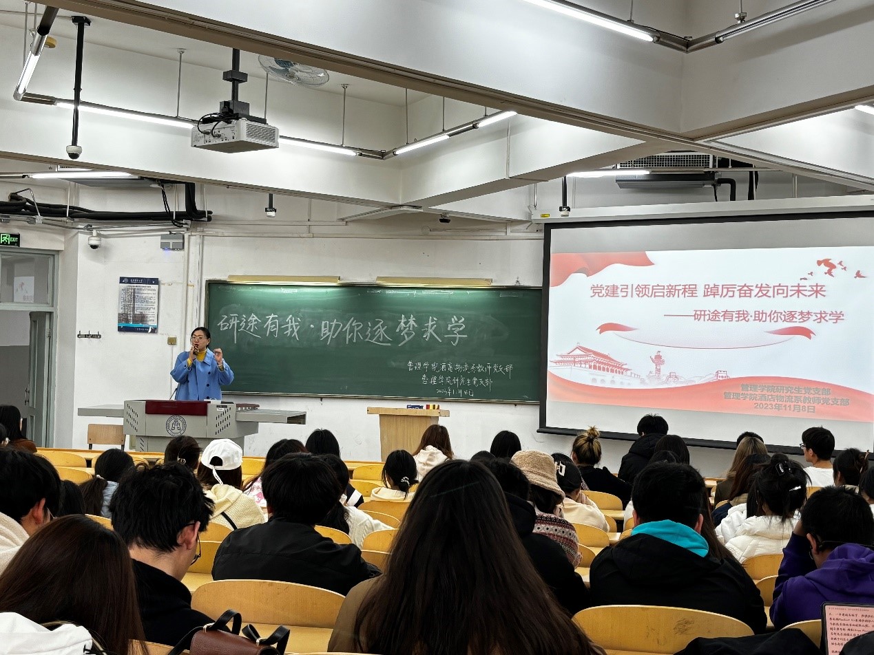2023年11月8日下午,yl1111永利集团研究生党支部、酒店物流系教师党支部组织开展“党建引领启新程 踔厉奋发向未来---研途有我,助你逐梦求学”考研经验交流分享会。公司党委副书记、研究生党支部和酒店物流系教师党支部党员、本科生200余人参加活动。