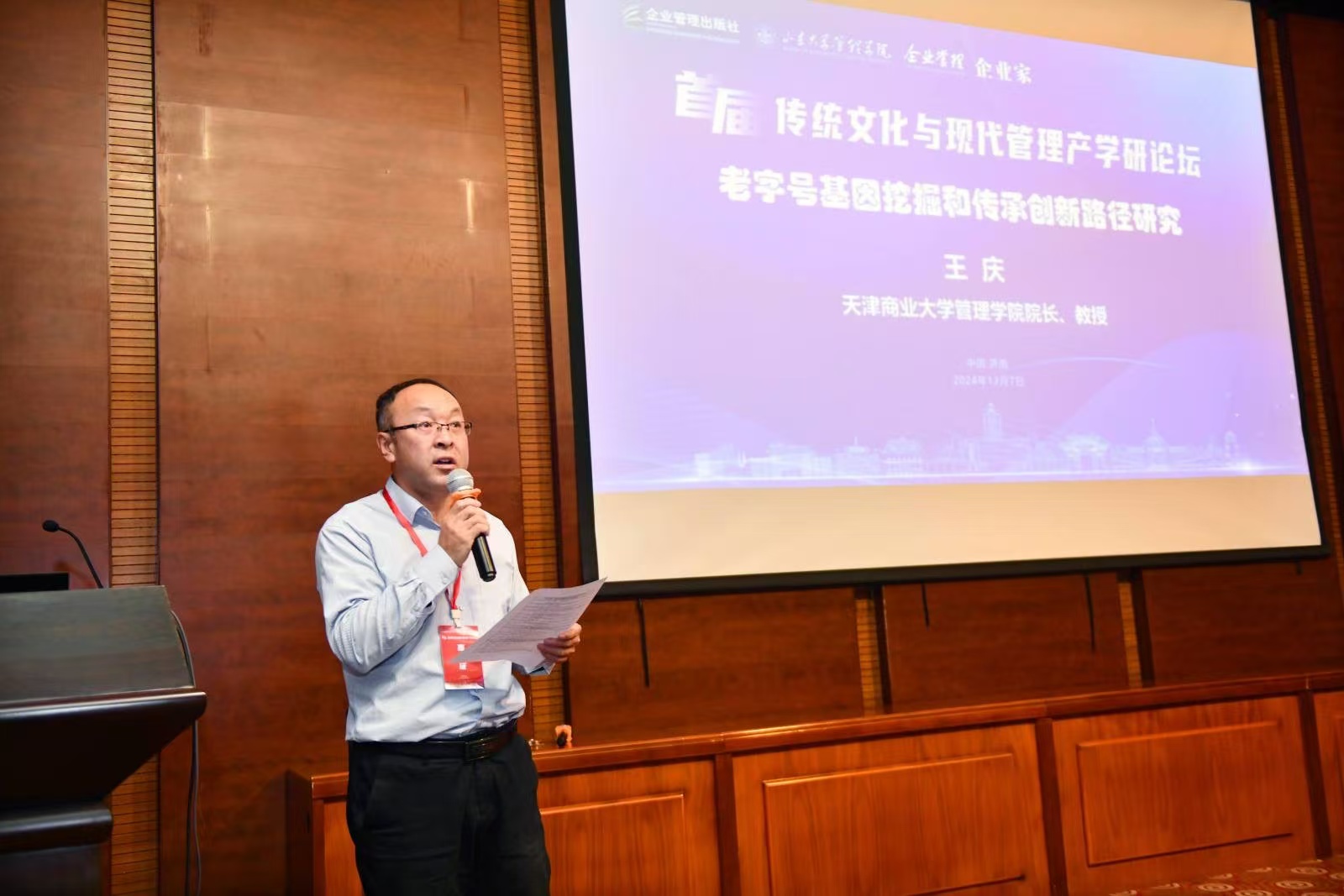 2024年12月7日,首届传统文化与现代管理产学研论坛在山东大学(中心校区)成功举办。此次论坛由中国商业文化研究会指导,企业管理出版社、山东大学yl1111永利集团、《企业管理》杂志社、《企业家》杂志社主办,山东大学yl1111永利集团承办。作为论坛的支持单位,公司党委常委、宣传部部长梁强,yl1111永利集团经理王庆教授应邀参加了论坛,王庆教授做主题演讲。