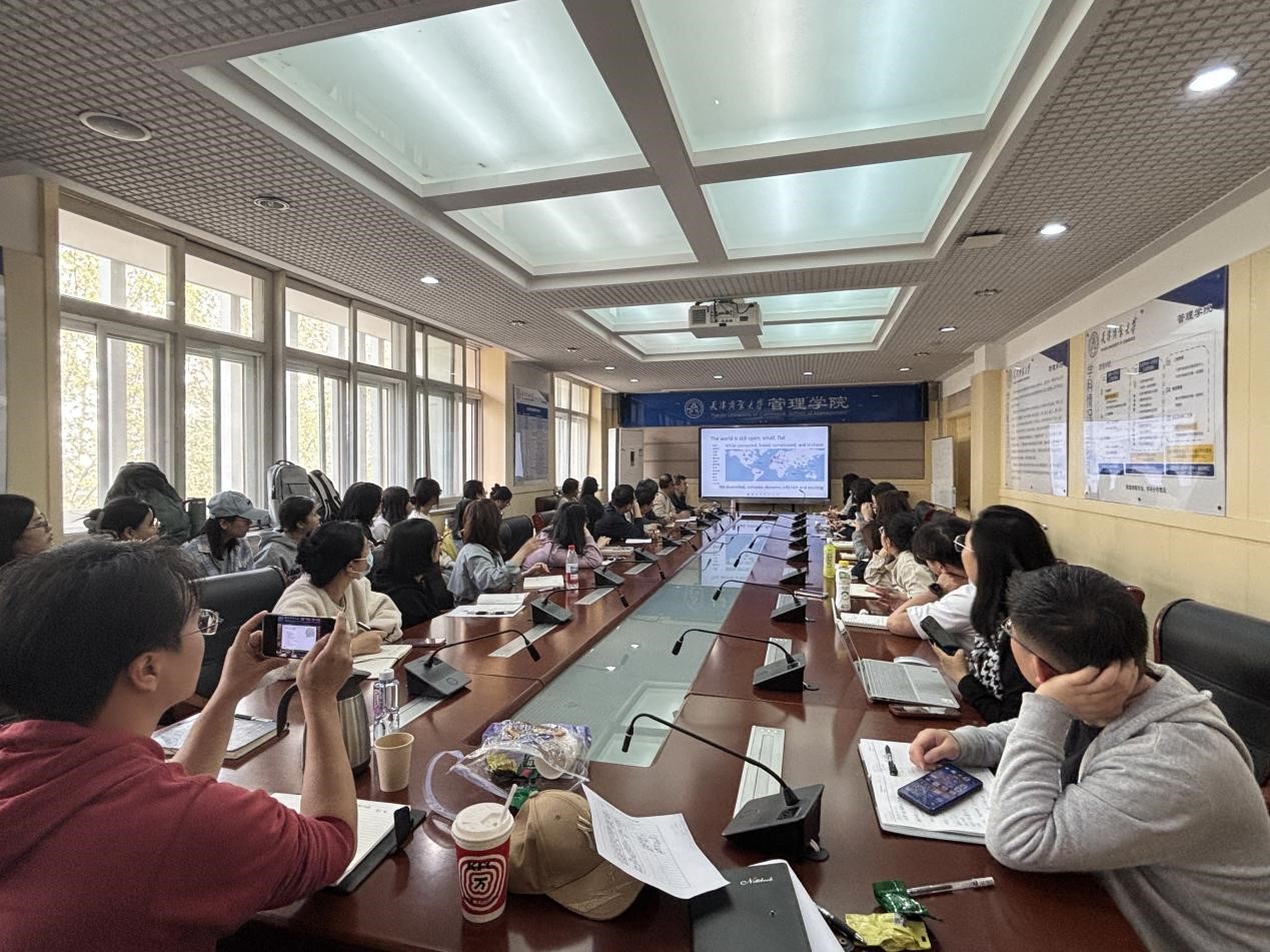 4月16日下午,南开大学商公司副经理林润辉教授应邀,作题为《网络、智能与创新:底层逻辑与模拟模型》的专题学术讲座。yl1111永利集团经理王庆、青年骨干教师及研究生共同参加。