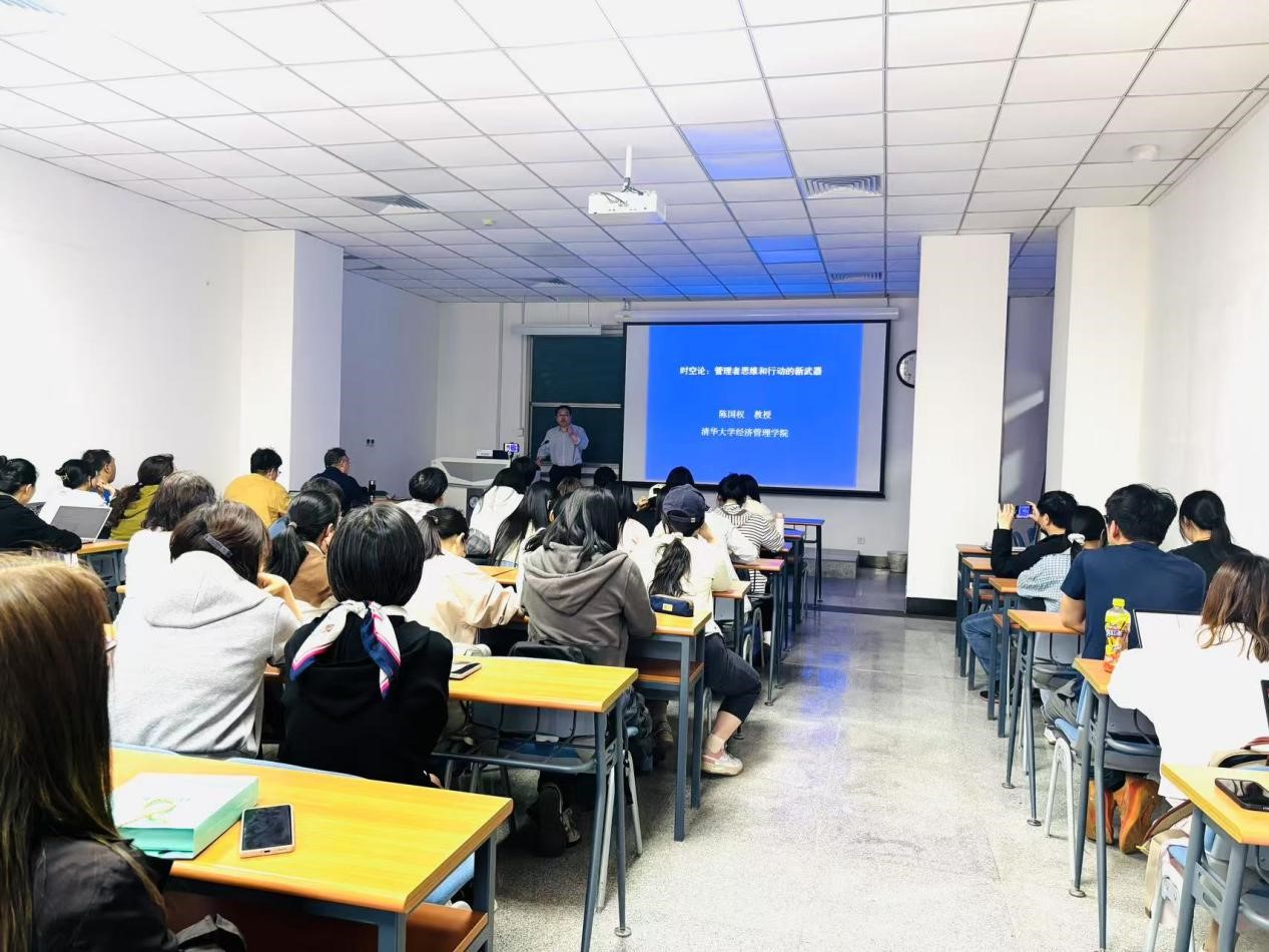 讲座中,基于《时空论》《领导和管理的时空理论》《时空领导力》等最新著作,陈教授结合古今中外案例,从时空思维的意义作用、类型方法、提升策略三方面展开。他以生动案例阐释开阔时空观对决策的关键影响,系统讲解狭义与广义时空思维的实践路径,并分享解读、体验等实用提升方法,为管理者提供全新思维框架。